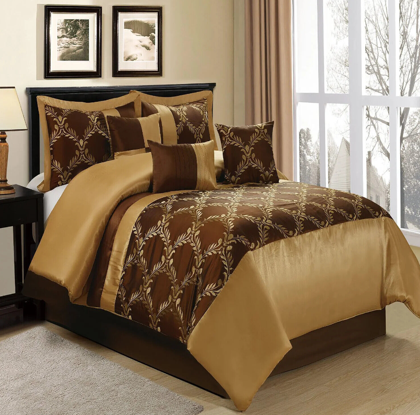HIG 7PC Comforter Set Bed in a Bag Taffeta Fabric Embroidered Bed for Room Decor
